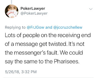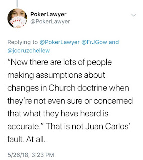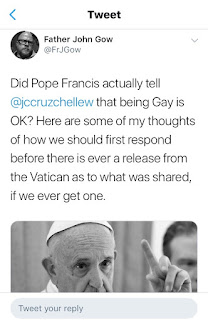 Given that the Church's official stance on homosexuals is that they are "intrinsically disordered," this caused Catholics, particularly priests, I follow on Twitter to go a little nuts. Many called on the Pope to clarify and remind the world about Church teaching on the subject. I even had a twitter exchange with one priest who, I felt, admonished Juan Carlos for not keeping the meeting private. His gripe was that he now had parishioners who had questions and he wasn't happy about having to answer those questions. (I can't make this stuff up)