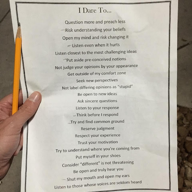 Whether you are a person who views the world and your life through a prism of faith or not, I think it's easy to look around in this age of Trump and wonder just what it is people of faith are representing. How people respond to kindness, mercy, love, especially when it's given or shown to the "other" is telling...Don't listen to what anyone says. Watch what they do.